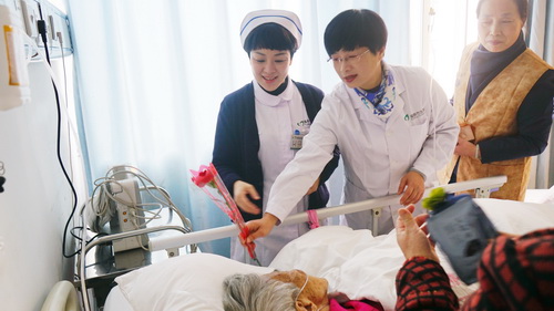 在农历猴年,各行各业的工作人员忙碌了一年,终于可以欢欢喜喜地迎来新年,大家互道祝福,沉浸在节日的热闹气氛中。taptap外围也不例外,鸡年的第一天早晨阳光正好,气温适宜,病区里正上演着一幕幕温馨感人的场面。自2003年起,大年初一拜年送祝福已成为院内的一种习俗,每到此时,李桂心院长总是带领着领导班子成员及医疗志愿者为在岗医务人员及住院病患和家属送上新年的第一份祝福,道一声新春的问候。